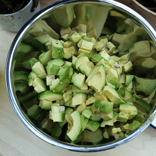 2 אבוקדו קלופים וחתוכים לקוביות בגודל 2*2 ס״מ